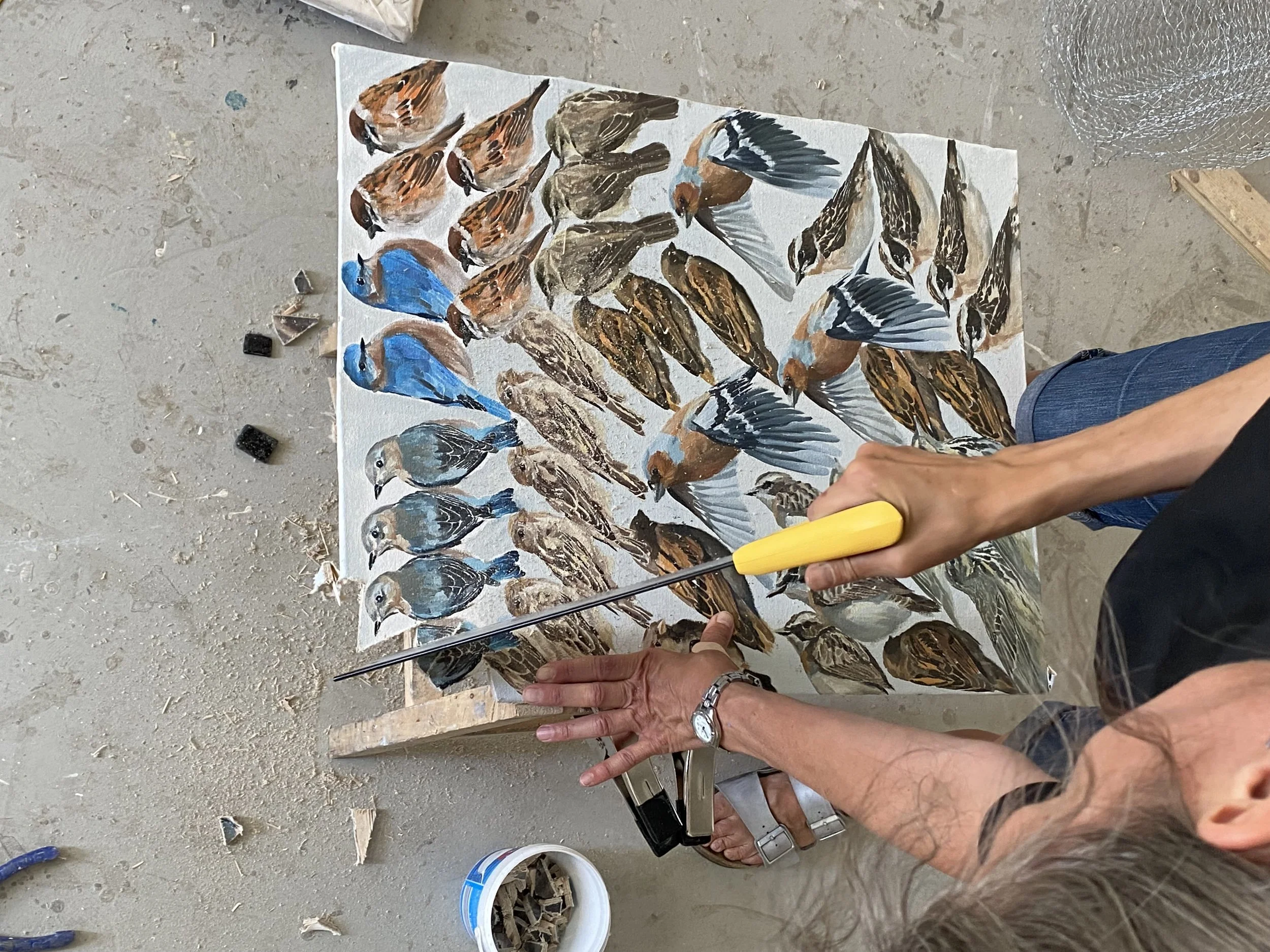 Birdlife , Imagecut IV, 2021, 40 x 32 cm, oil on canvas and concrete, Saastamoinen foundation , Emma, Espoo